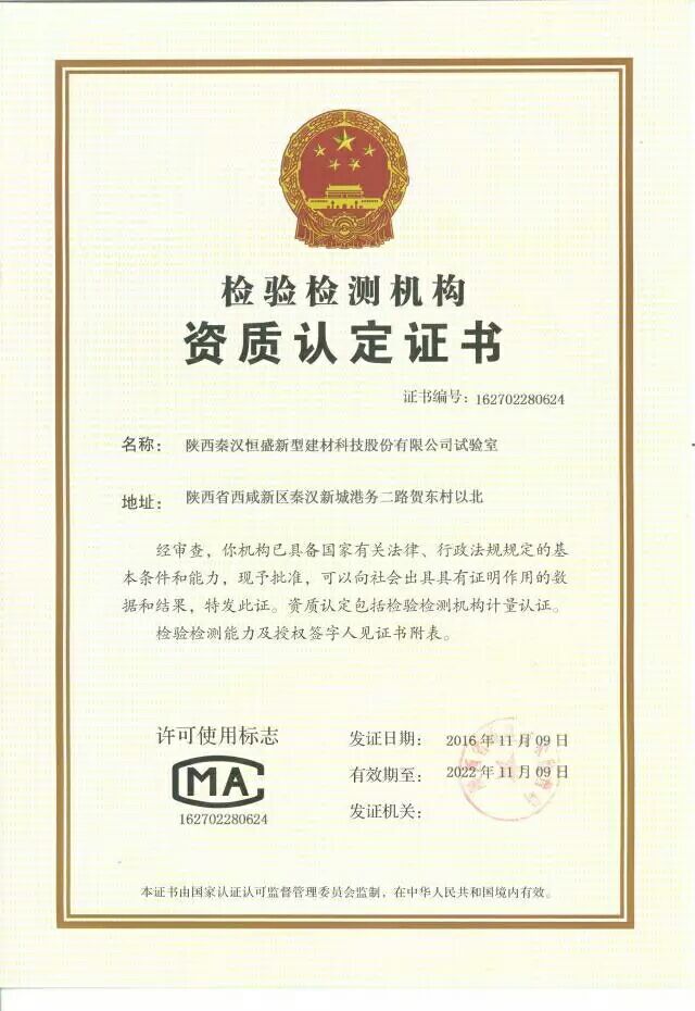 五、陜西秦漢恒盛新型建材科技股份有限公司試驗室順利通過資質(zhì)認定