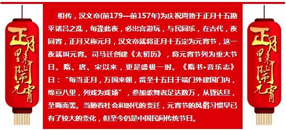 農(nóng)歷正月十五是“元宵節(jié)”,此節(jié)日民間有掛燈、打燈、觀燈燈習(xí)俗,故也稱燈節(jié)。鬧花燈是元宵節(jié)傳統(tǒng)節(jié)日習(xí)俗,始于西漢,興盛于隋唐。隋唐以后,歷代燈火之風(fēng)盛行,并沿襲傳于后世。而正月十五,又是一年一度的鬧花燈放煙火的高潮。
