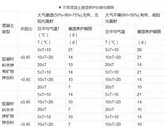 3.養(yǎng)護持續(xù)時間以規(guī)范中所規(guī)定的時間為最短時間,豎向混凝土結(jié)構(gòu)適當增加養(yǎng)護時間,結(jié)合混凝土的組成及配合比、環(huán)境溫度與濕度、養(yǎng)護方法、風(fēng)力、風(fēng)速等諸多因素綜合考慮。