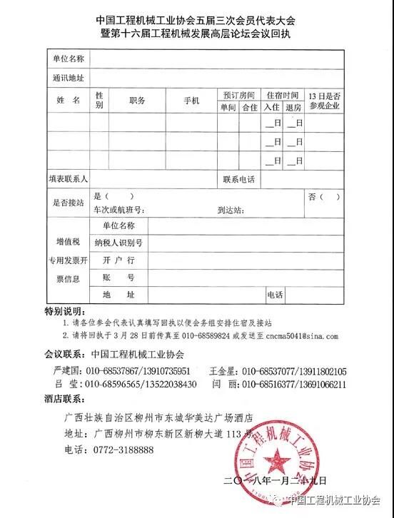 中國(guó)工程機(jī)械工業(yè)協(xié)會(huì)茲定于2018年4月11~14日在廣西柳州市召開(kāi)“中國(guó)工程機(jī)械工業(yè)協(xié)會(huì)五屆三次會(huì)員代表大會(huì)暨第十六屆工程機(jī)械發(fā)展高層論壇”。會(huì)員代表大會(huì)的主題是“新時(shí)代、新理念、新作為”。