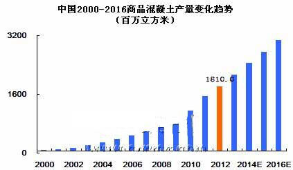 中國商品混凝土市場自2000年開始,增長就大幅度提升,2000-2012年平均增幅高達(dá)30%左右。但受全球經(jīng)濟(jì)危機(jī)的影響,中國2008年的商品混凝土市場也受到了不小的沖擊,商品混凝土的增長率大幅度下滑。不過與歐盟、美國等其他發(fā)達(dá)國家混凝土負(fù)增長率而言,中國混凝土市場表現(xiàn)的還是十分活躍的。這也反映出了中國的商品混凝土行業(yè)進(jìn)入高速發(fā)展時(shí)期的特征。但中國市場目前的市場狀況十分紊亂,行業(yè)內(nèi)需要進(jìn)行一番整合,清理一些市場上不規(guī)范的企業(yè),相信整合后對(duì)我國商品混凝土行業(yè)將起到較大的推動(dòng)作用。中國混凝土網(wǎng)預(yù)計(jì)“十二五”期間,預(yù)拌混凝土產(chǎn)量還將有小幅增長,到2016年中國預(yù)拌混凝土產(chǎn)量將突破30億立方米,混凝土行業(yè)將邁上一個(gè)新的臺(tái)階,但總體行業(yè)回歸平穩(wěn)狀態(tài)。