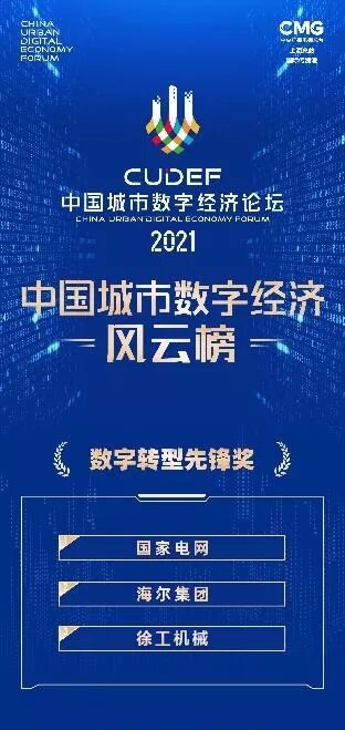 論壇上,《中國城市數(shù)字經(jīng)濟(jì)風(fēng)云榜》榮耀發(fā)布。榜單包括“城市數(shù)字經(jīng)濟(jì)競爭力綜合排名”,同時多項重磅獎項發(fā)布,“數(shù)字賦能先鋒獎”“數(shù)字轉(zhuǎn)型先鋒獎”“數(shù)字應(yīng)用方案獎”。徐工機械與國家電網(wǎng)、海爾集團(tuán)同時榮獲“數(shù)字轉(zhuǎn)型先鋒獎”,成為唯一入選的工程機械制造企業(yè)。