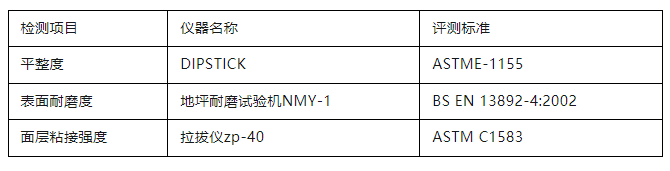參評項目包括混凝土面層地坪、水泥砂漿面層地坪、整體樹脂地坪系統(tǒng)三大類(下分13種細(xì)分地坪)?!癢OCA 地坪獎-亞洲賽區(qū)”(WOCA AWARDS)執(zhí)行國際先進的檢測檢驗標(biāo)準(zhǔn),對候選項目進行現(xiàn)場性能檢測,依據(jù)三個維度——平整度(FF/FL Testing)、表面耐磨度(BCA Abrasion Testing)、面層粘接強度(Pull-off Adhesion Testing)的測評數(shù)值加權(quán)系數(shù)后得出最終分?jǐn)?shù)進行評選。
