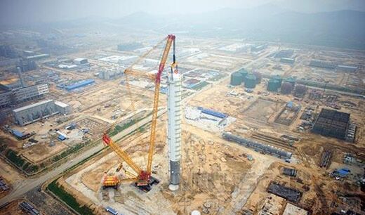 7月5日,由中石化第十建設有限公司與徐工集團聯(lián)合研發(fā)的世界上單臺起重能力最大的履帶式起重機--4000噸級(XGC88000)起重機成功啟用,并將萬華煙臺工業(yè)園吊裝高度118米、直徑14.4米、重量1680噸的丙烯塔吊裝就位。