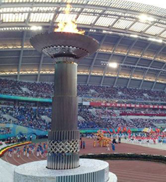 主火炬由沈陽北方交通重工集團(tuán)負(fù)責(zé)創(chuàng)意、設(shè)計(jì)、制作、安裝及點(diǎn)火的工作。據(jù)悉,本次主火炬的制作工作時(shí)間緊急,任務(wù)繁重。在僅50天的時(shí)間里,北方交通主火炬制作團(tuán)隊(duì)克服了重要技術(shù)及工藝難關(guān),僅用26天時(shí)間就成功升起。同時(shí),本次主火炬的制作,創(chuàng)下了歷屆當(dāng)中時(shí)間最短的紀(jì)錄,更是首次在室內(nèi)場館中進(jìn)行搭建吊裝,并且克服了多節(jié)升降結(jié)構(gòu)的舉升難題。作為項(xiàng)目總負(fù)責(zé)人,沈陽北方交通重工集團(tuán)董事長、總裁曲凱先生又立下了汗馬功勞,臨危受命之后為此特別成立了工作指揮部,全程親自指揮調(diào)度主火炬的創(chuàng)意、制作、安裝和調(diào)試工作,不分白天黑夜奔波于工廠和奧體中心之間,并及時(shí)向有關(guān)領(lǐng)導(dǎo)匯報(bào)工作。為保證完成時(shí)間,他制訂了嚴(yán)格的計(jì)劃表,要求各部門積極配合,同時(shí)調(diào)動(dòng)所有可以調(diào)動(dòng)的資源,克服一切困難全力奮戰(zhàn),保證晝夜連續(xù)施工,主火炬牽涉部件近萬個(gè),涉及電器、傳感、液壓、機(jī)械控制等多個(gè)領(lǐng)域,在北方交通近500人制作團(tuán)隊(duì)的齊心協(xié)力下,艱苦奮戰(zhàn)了40多個(gè)晝夜,主火炬終于如期完成,以最完美的姿態(tài)呈現(xiàn)在世人面前。