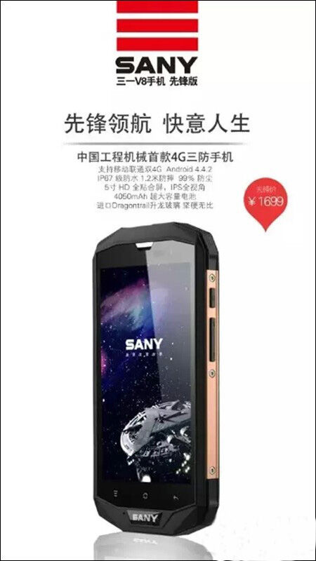 工程機械領域首開先河,并取得火爆銷售。2014年,三一開始進行第二代SANY手機的訂制工作,經過近6個月的籌備,5月28日,三一集團將帶來全新高端訂制的4G三防智能手機產品,即全新的SANY V8 Pioneer先鋒手機。除了擁有軍工等級的IP67三防功能外,SANY V8手機還將首次用上Android 4.4 KitKat系統(tǒng)。