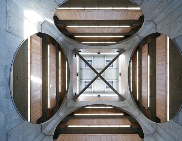 坎姆貝爾的拱頂覆蓋的是鉛板,康認(rèn)為鉛板具有和混凝土、鈣華石相通的材料特征。隨著時間的延伸鉛板會逐漸變成自然的質(zhì)感,在陽光的作用下有雪的反光效果。這些材料和諧的組織在一起,反映出康對材料自然本質(zhì)的熱衷和追求。
