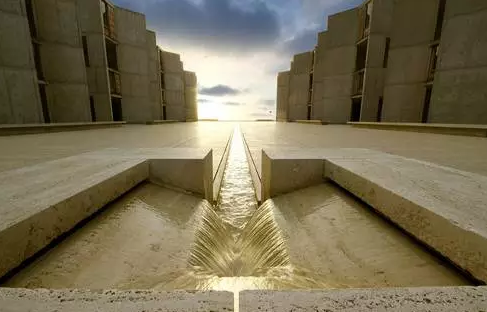 路易斯·康設(shè)計的加利福尼亞索爾克研究所,是一件大師級的作品。這里既是“具有學(xué)術(shù)氛圍的隱居之所”,也是科學(xué)研究的靈感之地。混凝土的澆筑,利用了從羅馬建筑研究汲取的技術(shù)。為了充分體現(xiàn)混凝土材料的特色,建筑師在材料設(shè)計完成后沒有再做任何的裝飾。