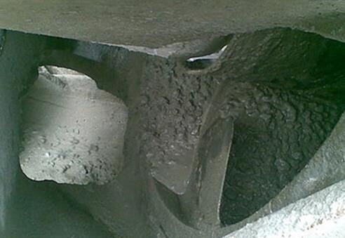 (5)嚴重泌水的混凝土易出現(xiàn)抓底或板結(jié)(粘鍋)。