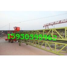 組合形式為:底盤有駕駛室和方向盤,有自動(dòng)行走功能;扒谷機(jī)安裝在底盤前部,可升降;組合輸送機(jī)安裝在底盤后部,可相對底盤左右旋轉(zhuǎn),輸送機(jī)部分又分為上下兩層輸送機(jī),上層輸送機(jī)的終端用轉(zhuǎn)盤和跑輪與下層輸送機(jī)連接,兩者可相對旋轉(zhuǎn)和移動(dòng),扒谷機(jī)部分又可以和上層輸送機(jī)90度范圍內(nèi)轉(zhuǎn)向。