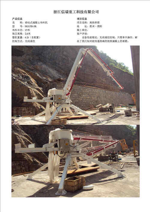 歸屬行業(yè):信瑞重HG24A-3R電梯井內(nèi)爬混凝土布料機