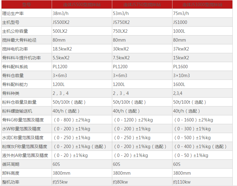 連體主機型混凝土攪拌站主要型號有:連體JS500型混凝土攪拌站、連體JS750型混凝土攪拌站、連體JS1000型混凝土攪拌站、連體JS1500型混凝土攪拌站等。