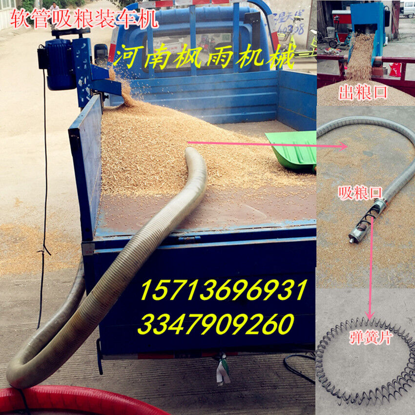 新型吸糧機,新型軟管吸糧機,在原有的基礎(chǔ)上改進了螺旋片加厚,不易斷,機頭機尾采用噴塑工藝,拆卸方便,省時省工,輕松搞定,軟管采用耐寒管,握不斷,壽命長,機尾為錐形設(shè)計,插入糧堆更方便,功率采用3kw,更有效的輸送糧食