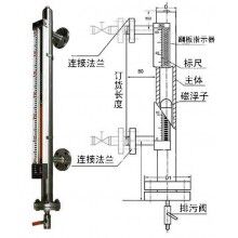 液位計(jì)根據(jù)浮力原理,浮子在測(cè)量管內(nèi)隨液位的升降而上下移動(dòng),浮子內(nèi)的永久磁鋼通過(guò)磁耦合作用,驅(qū)動(dòng)紅、白色翻柱翻轉(zhuǎn)180’液位上升時(shí),翻柱由白色轉(zhuǎn)為紅色,下降時(shí),翻柱由紅色轉(zhuǎn)為白色,從而實(shí)現(xiàn)液位的指示。