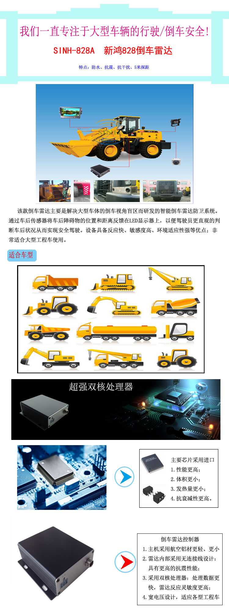 歸屬行業(yè):鑫鴻528A倒車?yán)走_(dá),工程車倒車?yán)走_(dá)5米探測(cè),SINH-528A鏟車專用倒車?yán)走_(dá)