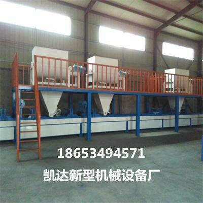 2.該機采用多驅(qū)動對輥擠壓工藝,產(chǎn)品從上漿、主料、鋪布、復(fù)合、復(fù)壓一次性完成整板的生產(chǎn)線過程,生產(chǎn)的產(chǎn)品厚薄均勻,用工少,7-10人即可,自動化多層一次完成復(fù)合,日產(chǎn)量1000--1500平方米。生產(chǎn)的產(chǎn)品按6公分厚度計算每平方米成本價格60--