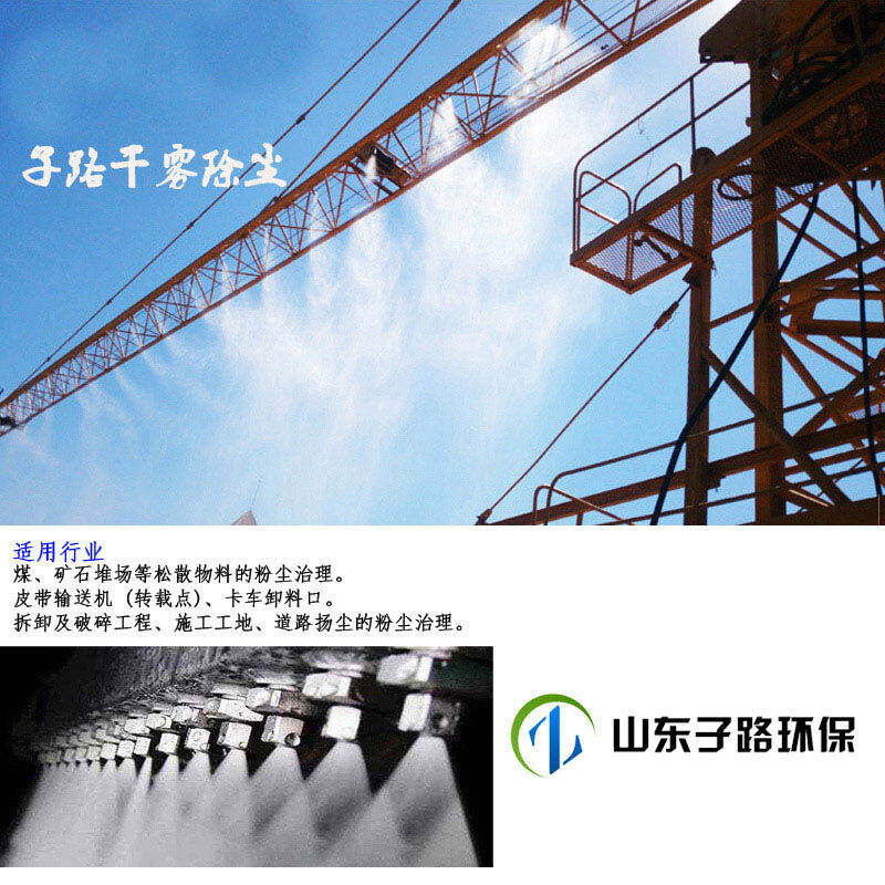 煉鋼廠制造制練、火力發(fā)電廠、煤礦選煤場(chǎng)、鐵路翻車機(jī)、電廠輸煤系統(tǒng)、車間物料貨場(chǎng)、導(dǎo)料槽、皮帶運(yùn)輸機(jī)、料場(chǎng)出入口、城市美化、人造霧景觀、人造彩虹等。