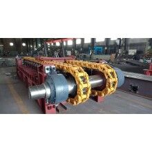 張緊裝置采界螺旋拉緊,使得履帶鏈條調(diào)整簡單靈活。被動軸上安裝有兩個通過淬火處理的被動鏈輪,可確保鏈條正常運行。