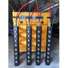 根據(jù)施工的要求我們研發(fā)出了兩款設(shè)備進(jìn)行不同工程的巖石破碎,大型劈裂機(jī)FR-5600型重1.3噸,長(zhǎng)度為3米。使用時(shí)需要用鉤機(jī)吊起來(lái)進(jìn)行巖石。配合履帶式鉆機(jī)開采效率可達(dá)幾百方甚至更多看現(xiàn)場(chǎng)操作。人工手持式巖石機(jī)分為3個(gè)型號(hào),分別為150 250、350因其操作性高,可在狹小空間操作,分別適用于礦洞掘進(jìn)、豎井開挖、混凝土破碎、露天開采等工程。