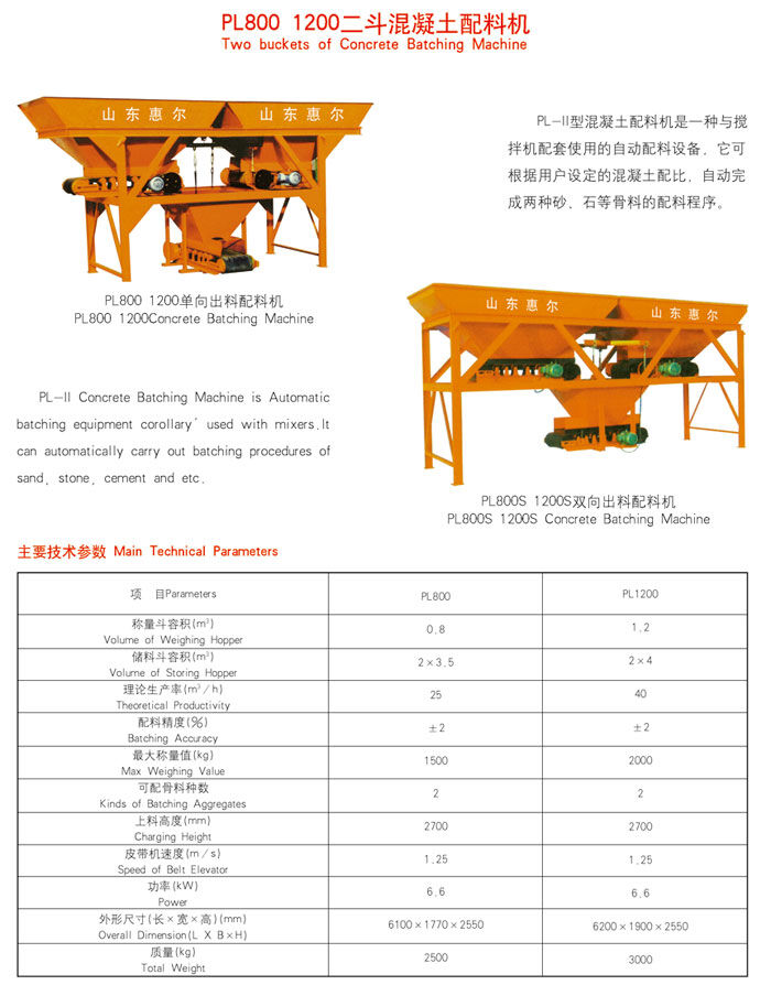 PL1200二斗混凝土配料機(jī)