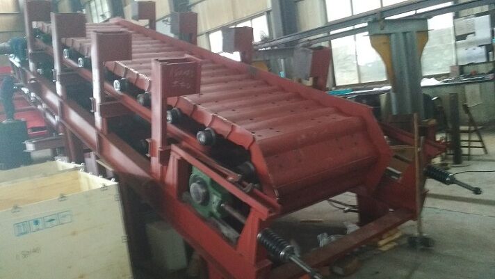 2、輸送槽板: 整個槽板圍成一個相對封閉的箱體,以保證上部來料能夠有效進入板鏈上部,便于物料自開口處由刮板輸送至下一級輸送系統(tǒng),同時保證不使物料散落。