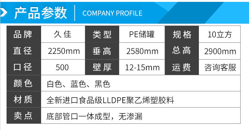 2、久佳儲罐采用進口韓國進口644線性低密度(LLDPE)原料,韌性和強度均優(yōu)于其他原料,符合中國食品衛(wèi)生檢測標準。可提供合格證、檢測報告等文件