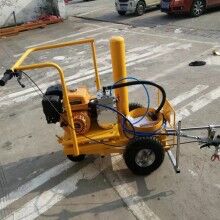 冷噴(冷漆)劃線機(jī):冷噴劃線是一種歷史最為悠久的一種常規(guī)型劃線,該類劃線一般由一臺常溫劃線機(jī)即可完成施工。冷噴劃線機(jī)按照其劃線方式不同可分為高壓無氣型、低壓空氣輔助型等兩個類型;按照其所使適用涂料的種類不同又分為常溫熔劑型、常溫水性及加熱溶劑型三個類型(廣義的常溫標(biāo)線機(jī)械也包括雙組份型,尤其是雙組份噴涂型,它是一種兼具常規(guī)常溫涂料及雙組份涂料噴涂功能的廣譜型劃線機(jī)),如下圖手推式高壓無氣冷噴劃線機(jī)