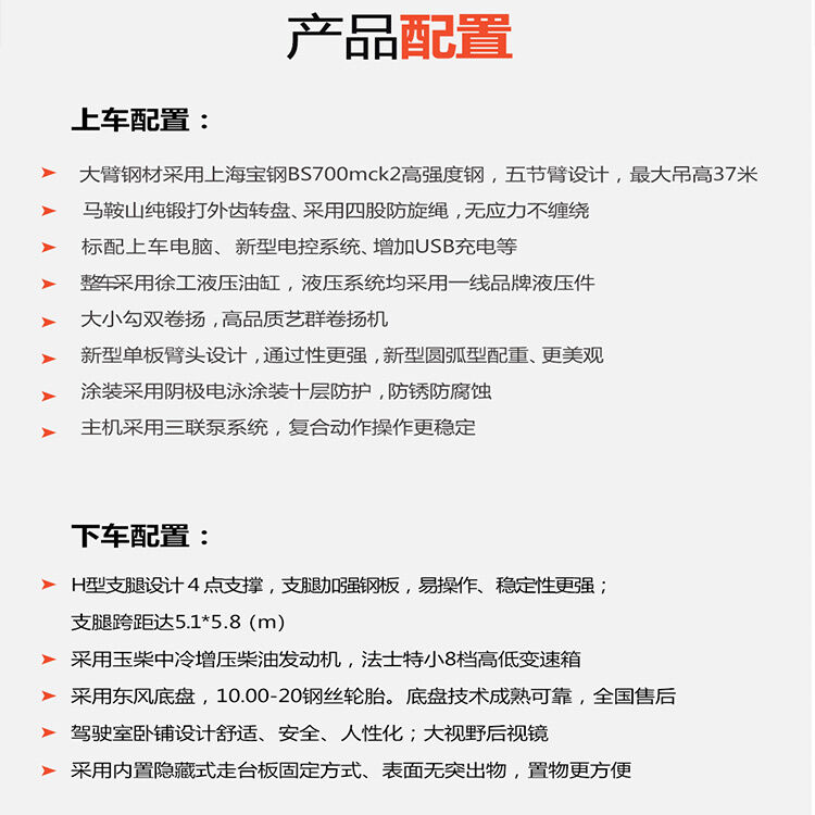 1.大臂鋼材采用上海寶鋼BS700mck2高強(qiáng)度鋼,五節(jié)臂設(shè)計(jì),最大吊高37米