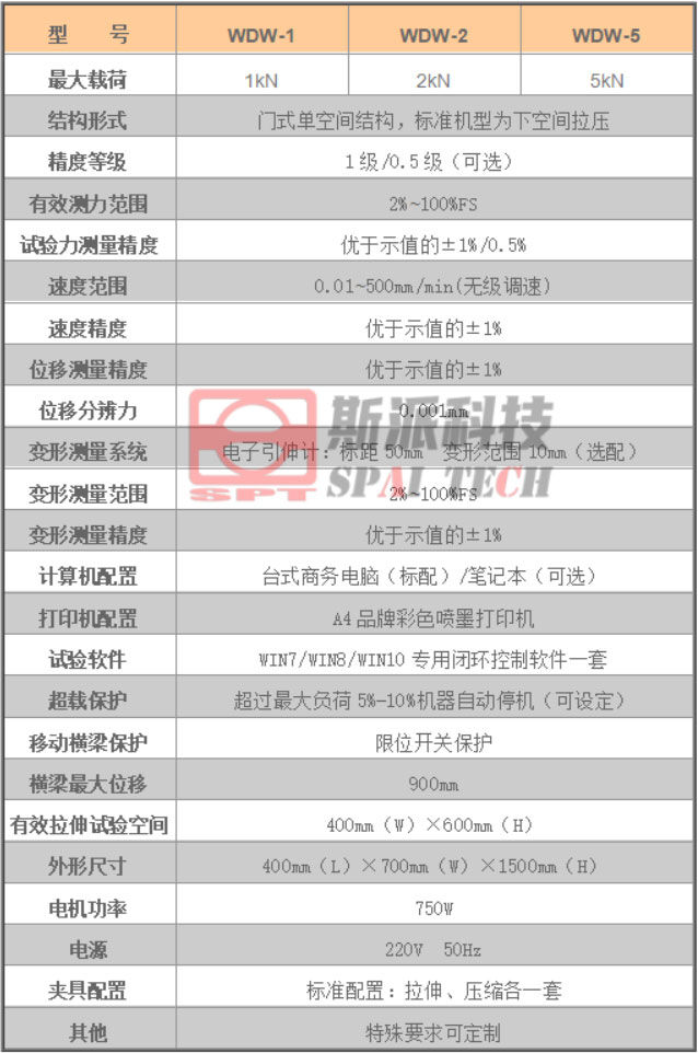 WDW系列小門式微機控制電子萬能材料試驗機采用穩(wěn)定的門式主機結(jié)構(gòu),選用日本松下(Panasonic)伺服調(diào)速系統(tǒng)、精密設(shè)計同步減速系統(tǒng)、臺灣上銀(HIWIN)/銀泰(PMI)滾珠絲杠、美國傳力(Trancell)/世銓(Celtron)力傳感器等主要部件,主要應(yīng)用于金屬、非金屬材料及制品的拉伸、壓縮、彎曲等力學性能試驗,具有結(jié)構(gòu)簡單、穩(wěn)定可靠、外形美觀等特點,深受廣大用戶的歡迎。