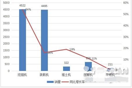 25家納入統(tǒng)計(jì)的挖掘機(jī)企業(yè)累計(jì)銷售挖掘機(jī)4500多臺(tái),同比大漲54%,在連續(xù)四個(gè)月同比高達(dá)70%的高速增長之后,上升勢頭依然強(qiáng)勁。