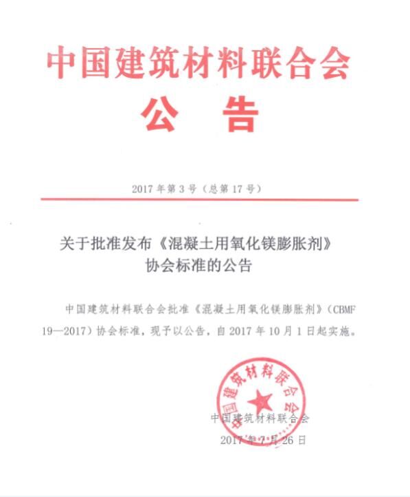 2017年7月,由中國混凝土與水泥制品協(xié)會(以下簡稱協(xié)會)組織制定的《預制混凝土箱涵工藝技術(shù)規(guī)程》和《混凝土用氧化鎂膨脹劑》兩項協(xié)會標準,通過審定并發(fā)布批準公告,標準號分別為CBMF 18-2017和CBMF 19-2017,將同時于2017年10月1日起實施。這是國務院《深化標準化工作改革方案》(國發(fā)[2015]13號)及質(zhì)檢總局、國家標準委《關(guān)于培育和發(fā)展團體標準的指導意見》(國質(zhì)檢標聯(lián)[2016]109號)發(fā)布后,協(xié)會與中國建筑材料聯(lián)合會(以下簡稱聯(lián)合會)聯(lián)合發(fā)布的首批協(xié)會標準,兩項標準將公開出版并發(fā)行。