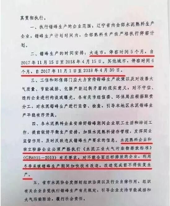日前,遼寧省工信委和遼寧省環(huán)保廳聯(lián)合發(fā)文要求遼寧省水泥企業(yè)于今年11月開始啟動水泥行業(yè)采暖季錯峰停產(chǎn)計劃,除大連市以外的其他城市的全部水泥熟料生產(chǎn)企業(yè)錯峰停產(chǎn)6個月,錯峰生產(chǎn)自今年11月1日起停至明年春天4月末結(jié)束。