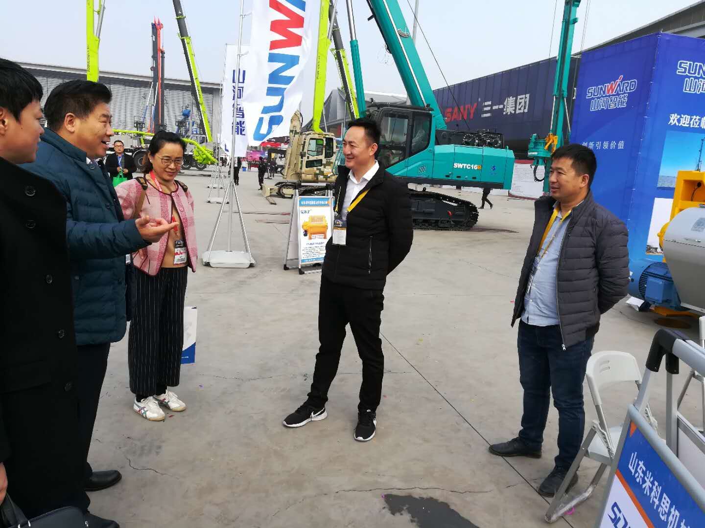 在2017長沙配博會上中國工程機械工業(yè)協(xié)會混凝土機械分會符忠軒會長及秘書長易君在砼商網(wǎng)劉娟女士的陪同下走訪參展會員單位。