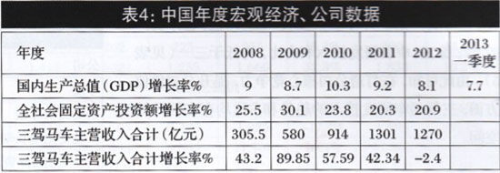 在連續(xù)多年保持高速增長(zhǎng)之后,三駕馬車內(nèi)部約宅因素增多、外部環(huán)境嚴(yán)峻等狀況,均在年報(bào)中得到反映.其多項(xiàng)財(cái)務(wù)指標(biāo)出現(xiàn)回落趨勢(shì)。企業(yè)發(fā)展到于—個(gè)臨界點(diǎn),調(diào)整發(fā)展戰(zhàn)略的時(shí)間窗口已經(jīng)開(kāi)啟。
