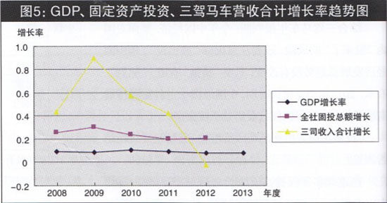 圖5 GDP、固定資產(chǎn)投資、三駕馬車營(yíng)收合計(jì)增長(zhǎng)率趨勢(shì)圖