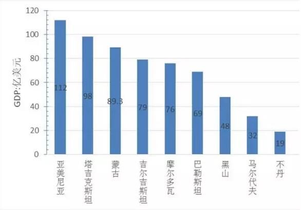 圖2“一帶一路”地區(qū)經(jīng)濟(jì)總量后10名的國(guó)家