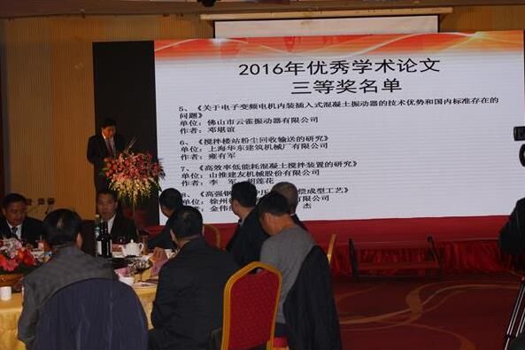 晚宴進(jìn)行過程中,中國(guó)工程機(jī)械工業(yè)協(xié)會(huì)混凝土機(jī)械分會(huì)符忠軒會(huì)長(zhǎng)上臺(tái)宣讀了《關(guān)于2016年學(xué)術(shù)論文評(píng)獎(jiǎng)結(jié)果的通報(bào)》,并進(jìn)行了優(yōu)秀論文頒獎(jiǎng)活動(dòng)。